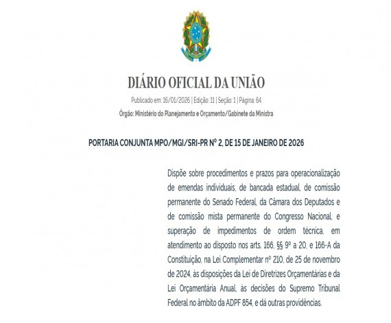 Portaria estabelece regras para execução de emendas parlamentares; CNM orienta g...